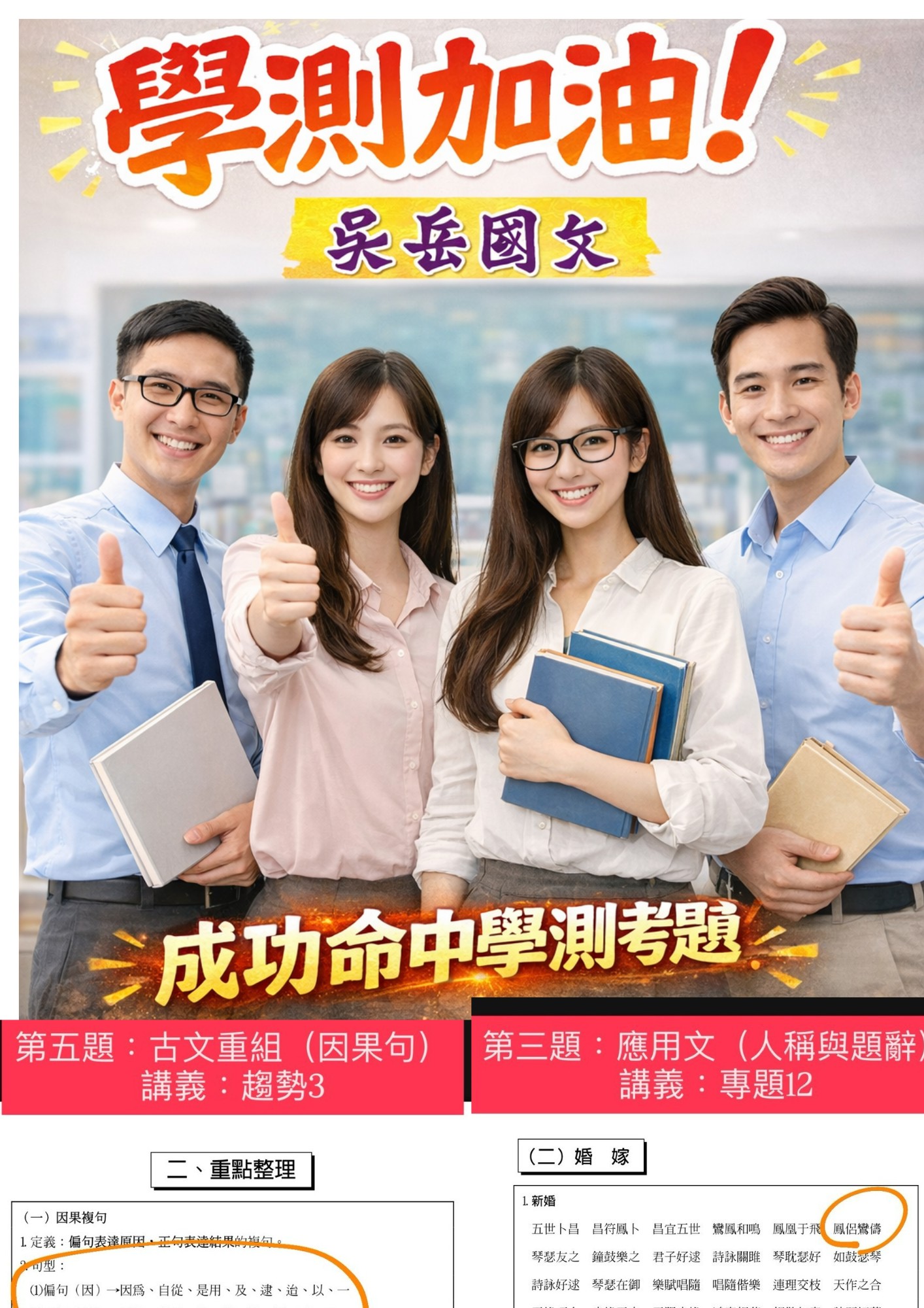 115 學測國文科多項題型、素材再次與本班講義精準重疊。🎯